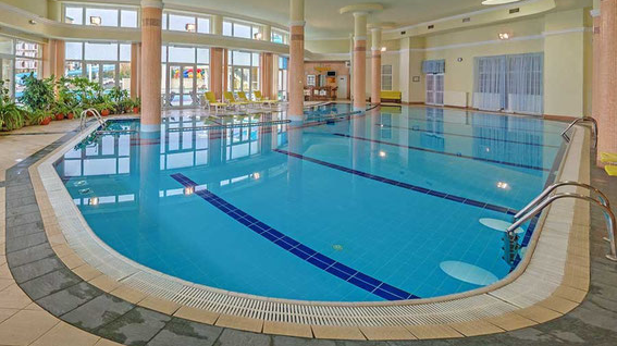 (сухая, 75° С), турецкая баня «Хаммам» (влажная, 43° С), соляной грот, душ Виши, лаунж-зона и спа-ресторан.